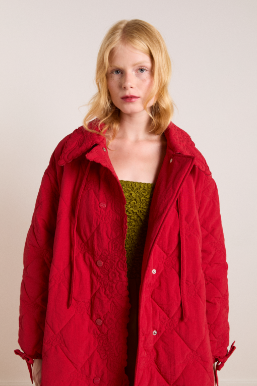 Stop traffic in our stand-out Avery quilted coat in bold cherry red. Featuring an all over quilted design, finished with an embroidered trim on the collar and placket. With pockets to keep your hands warm and an internal phone pocket for practicality, the Avery covers all bases and is a favourite for a reason.
