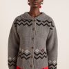 Damson Madder Women’s Cecily Collar Lambswool Cardigan – Bunny Intarsia | Grey