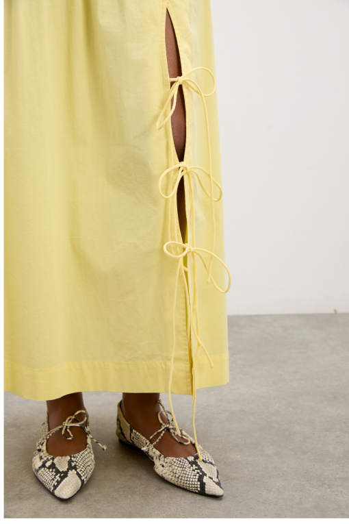 A butter yellow dream, our Charlotte Midi Skirt is effortlessly feminine. Featuring a side split with bow fastenings and an elasticated waist for comfort. Wear with the matching Bea Cami for ultimate impact.