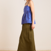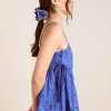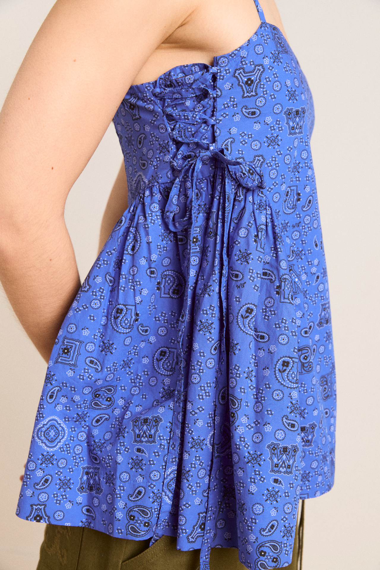 The perfect flowy summer cami, the Cressida features a square neck with adjustable tie detailing at the sides. A shirred back bodice provides stretch for a comfortable fit, finished in a custom blue paisley pattern that creates a vintage feel. Pair with our matching accessories.