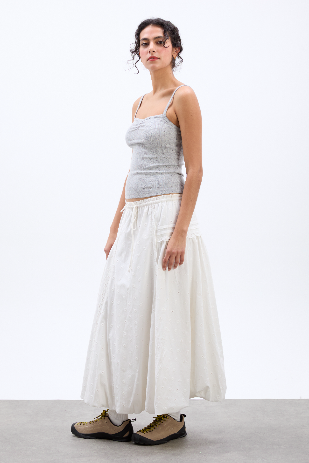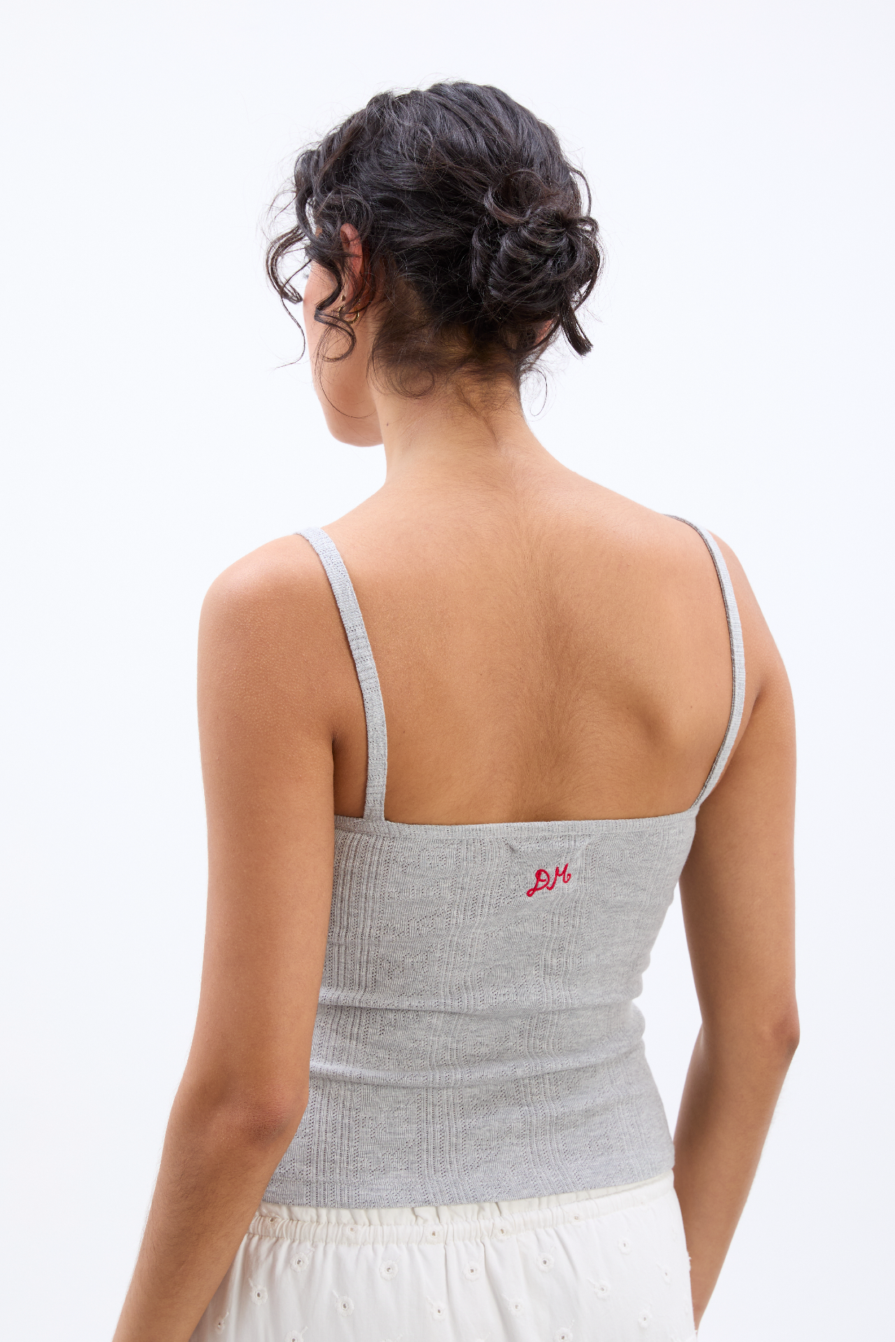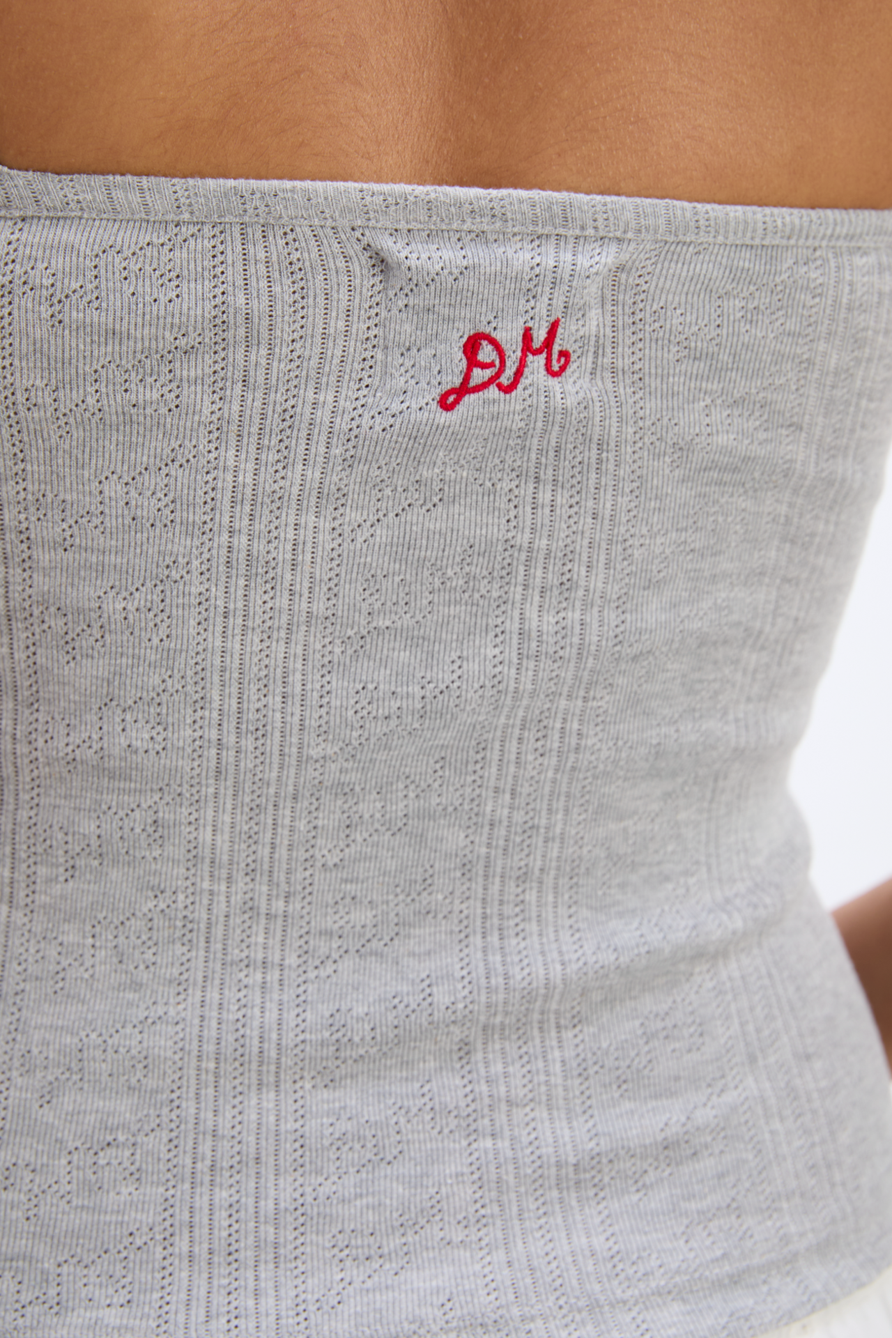 Soft and effortless, the Dove Pointelle Strappy Cami features delicate ruched detailing at the bust and an intricate DM pointelle design. With a full-length body and a true to size fit, this lightweight cami is crafted from an organic cotton blend for all-day comfort.