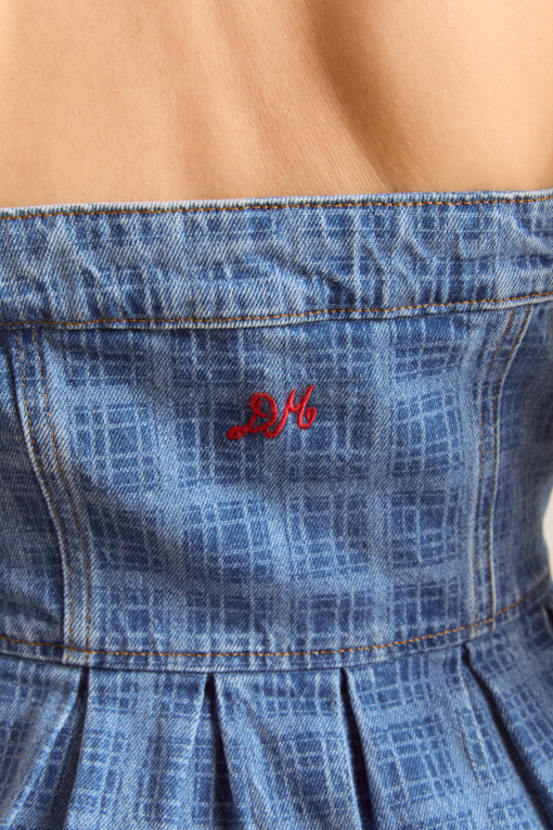 Expertly crafted using waterless laser technology, the Eloise Denim Top makes a statement in our laser check print. Featuring a peplum hem, strapless neckline and front shank opening, it’s the perfect top to elevate any look. Pair with our matching Tovie Jeans for a head to toe look.