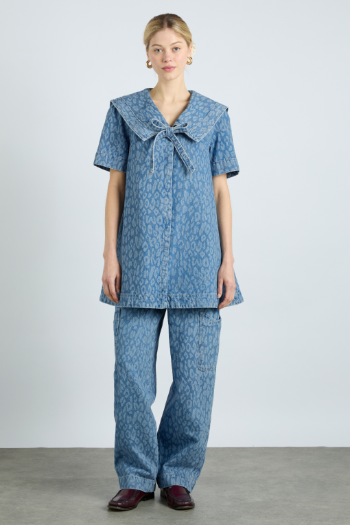 Boxy and structured, our new Goldie dress is designed to be thrown on and lived in. Layer it over a matching jean as a nod to Y2K trends.