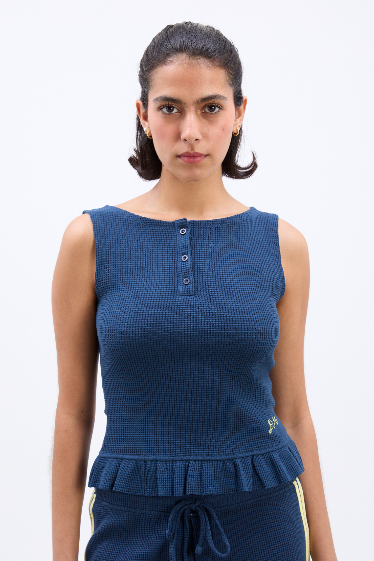 Damson Madder Women’s Hattie Waffle Cami – Navy/butter | Navy & Yellow