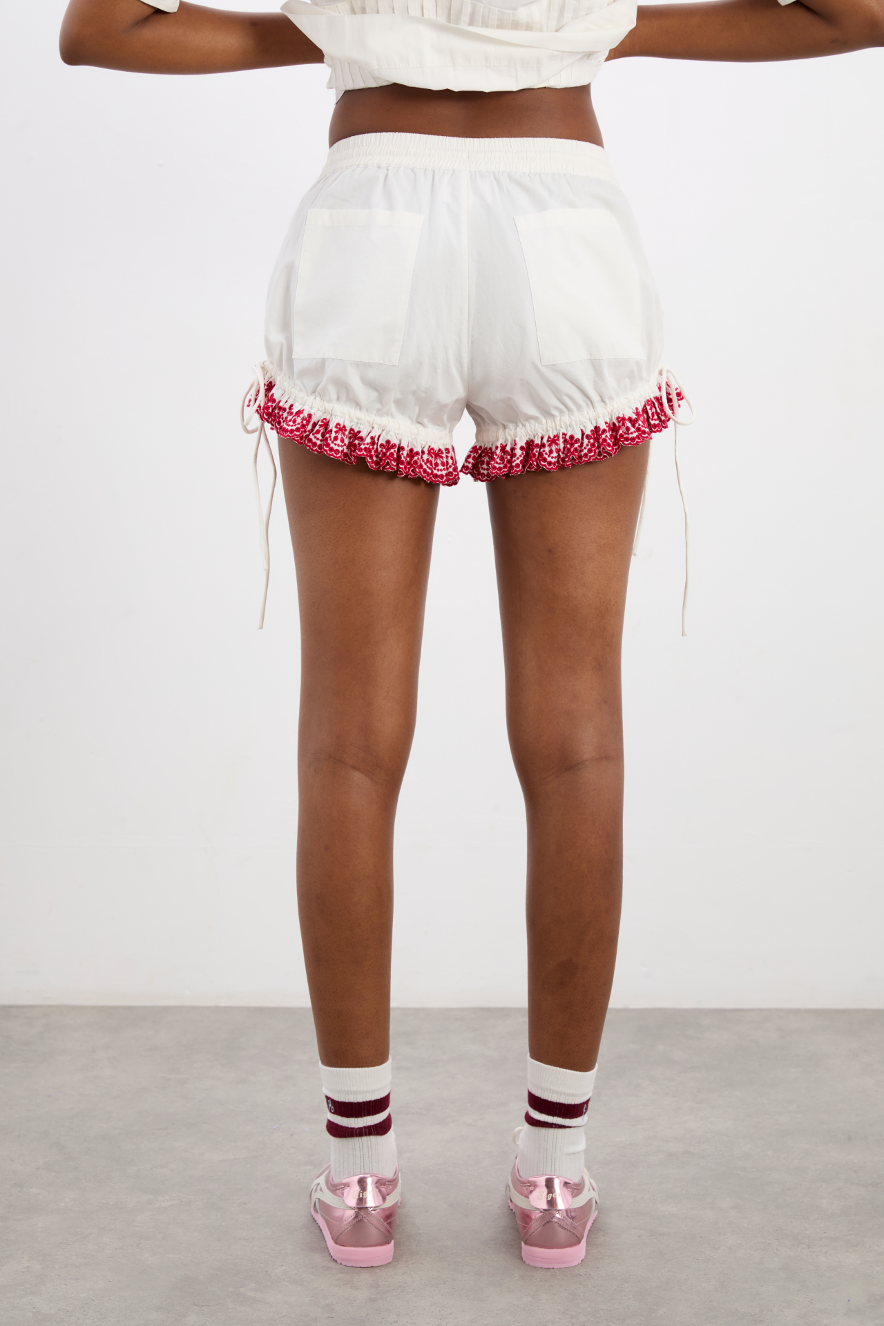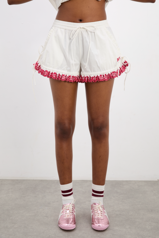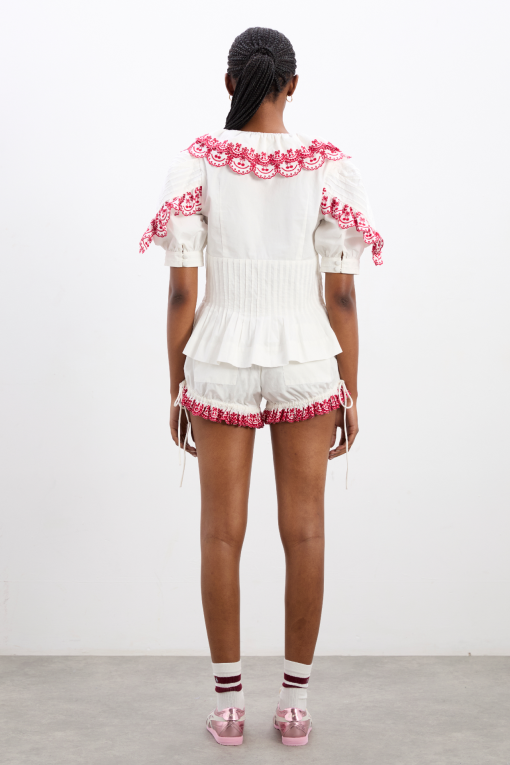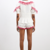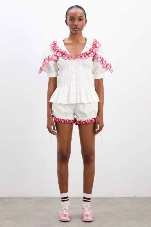 Playful and practical, meet the Jenna Bloomer Shorts. Featuring embroidered cherry detailing, an elasticated waist and adjustable ties, these can be adjusted to be worn as a bloomer or short depending on your mood. Made from 100% cotton. Pair with our matching Caroline Blouse for a sweet summer set.