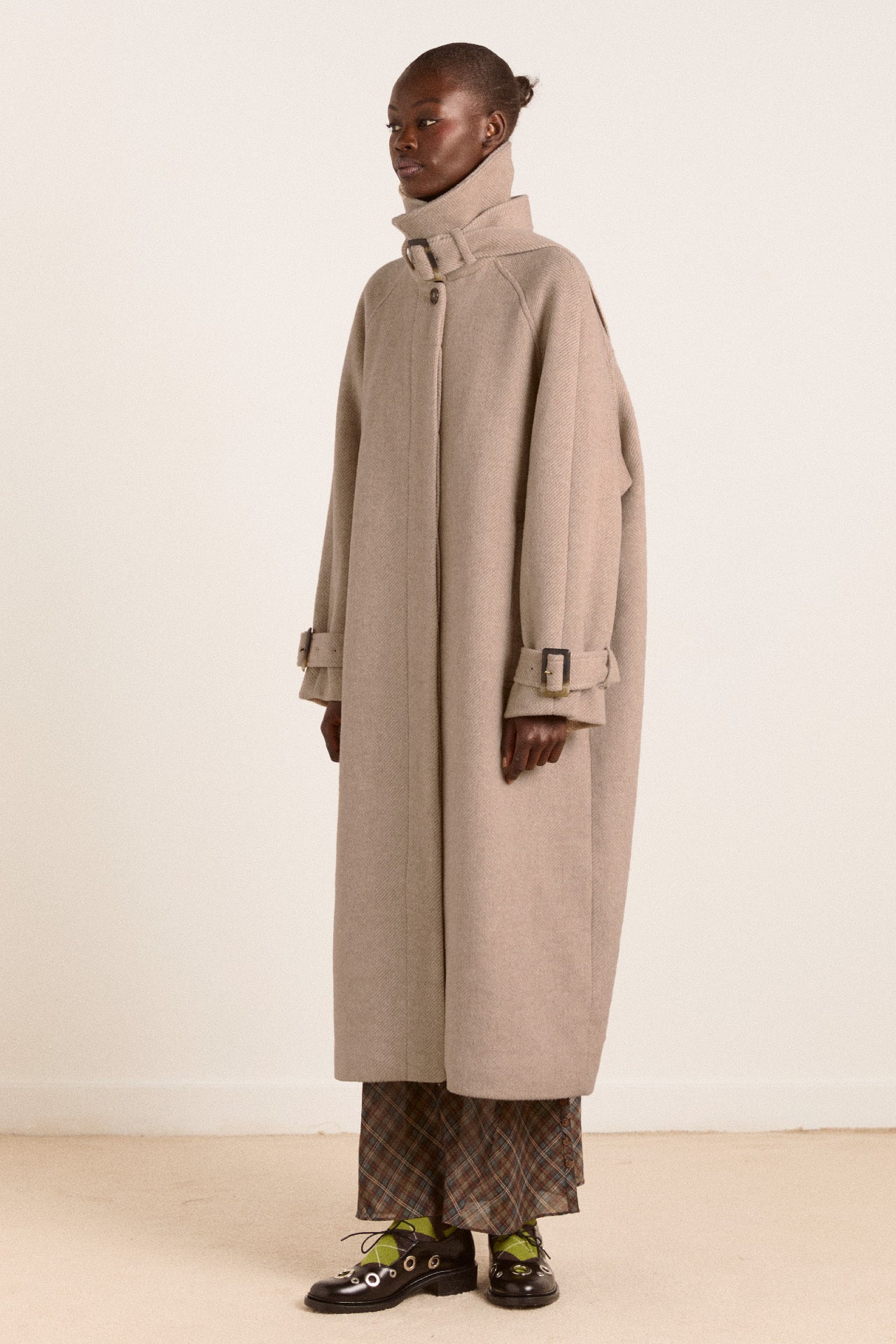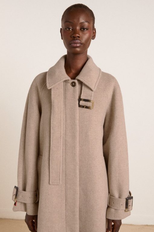 A sophisticated staple, the Jude Wool Coat in Oat fuses tailored structure with expert craftsmanship. Made from 50% recycled wool, 50% recycled polyester, it features deep side pockets and a hidden button placket. Complete with a removable neck tie and cuff details, the Jude will never go out of style.