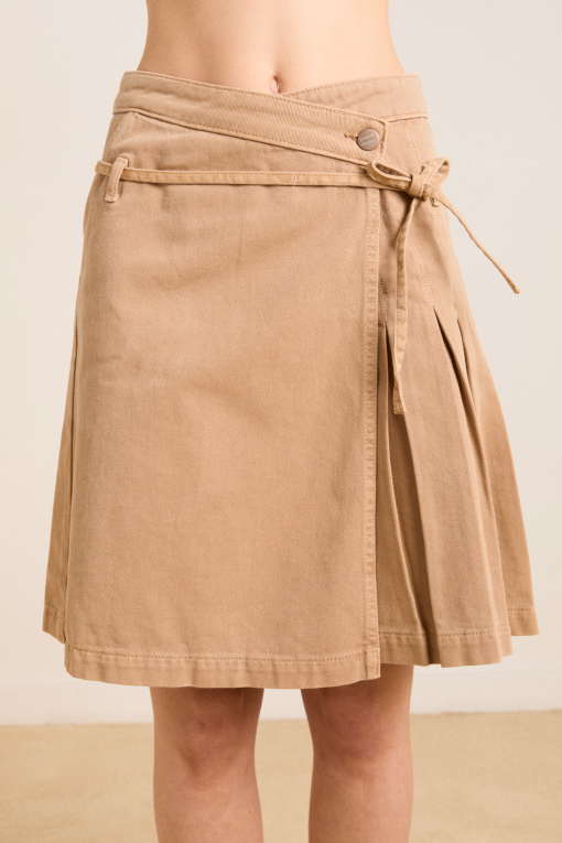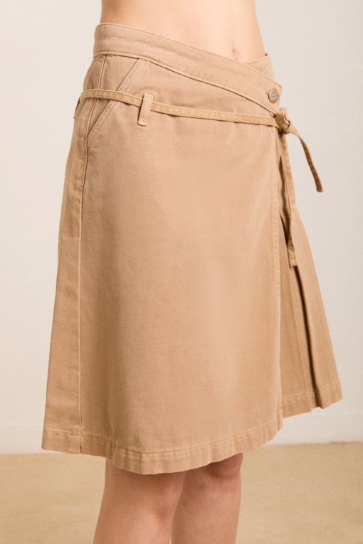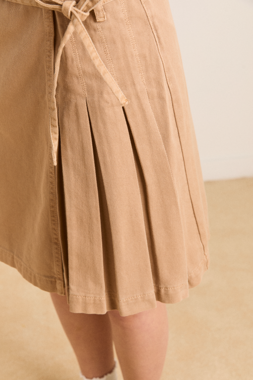 Our Kat Kilt leans into tradition with its pleat detailing, while its camel garment dye denim nods to modernity. Made from 80% organic cotton and 20% recycled cotton, it features a removable belt and side pockets. Pair with our matching Francie Blazer or layer over our matching Sylvie Jeans.