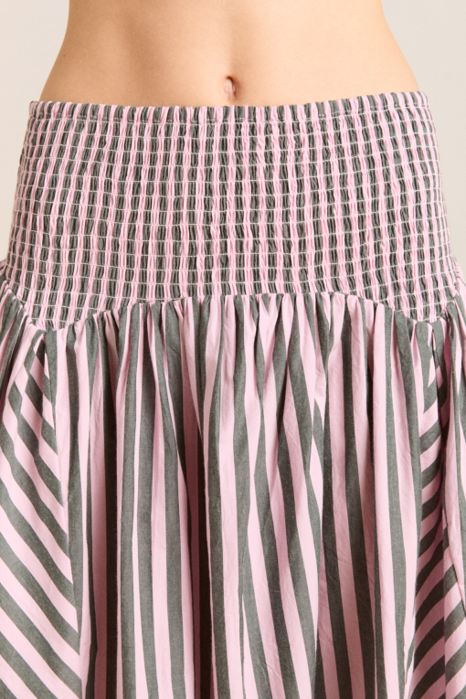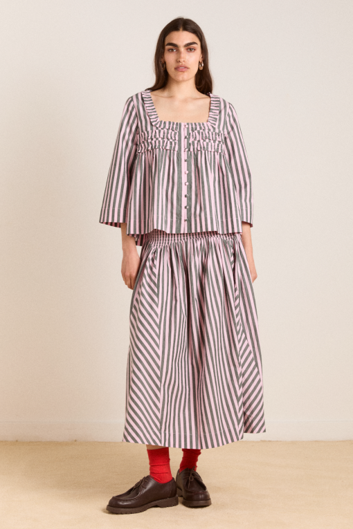 Falling to a midi length, the Layla Skirt in garden tulle stripe is a transeasonal staple. Featuring a dropped waist, with a shirred elasticated waistband, this skirt is comfortable and stylish. Pair with our Leilani Blouse or Lux Shirt for a full head to toe look.