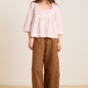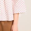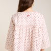Elevate your look with the Leilani Blouse in off white and red spot. Crafted from 100% organic cotton, this blouse features a square neckline, detailed with ruffles, for a vintage-inspired, feminine feel. Complete with an A-line silhouette and flowy 3/4 sleeves, this blouse is effortless and perfect for any occasion. Pair with our matching Layla Skirt for a head to toe look.