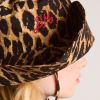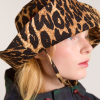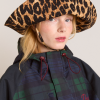 Our Damson Madder sun hat is a classic bucket hat shape with wide brim. It features a tie neck and our signature DM leopard print design with contrasting red DM embroidery.