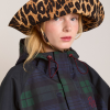 Our Damson Madder sun hat is a classic bucket hat shape with wide brim. It features a tie neck and our signature DM leopard print design with contrasting red DM embroidery.