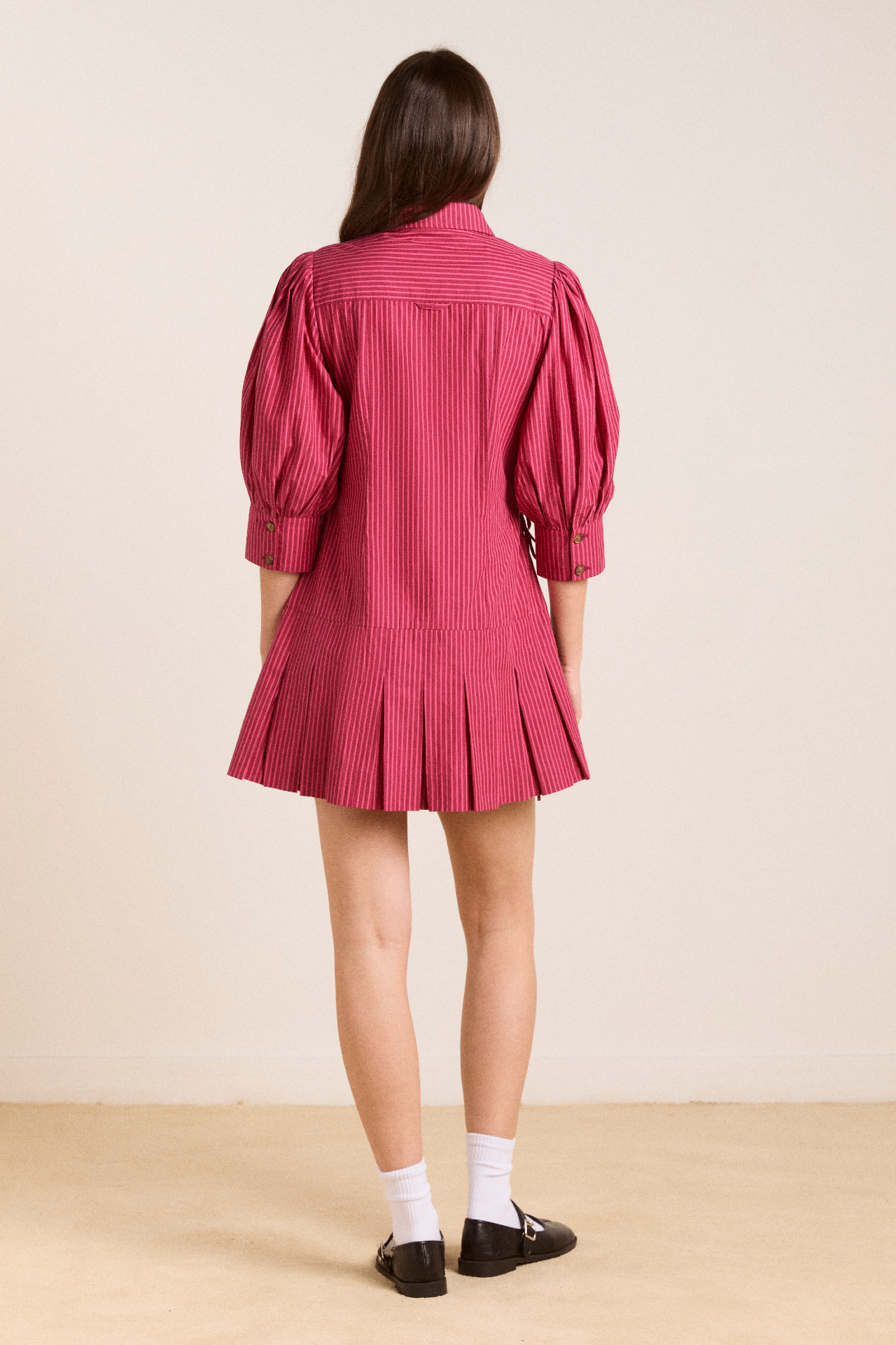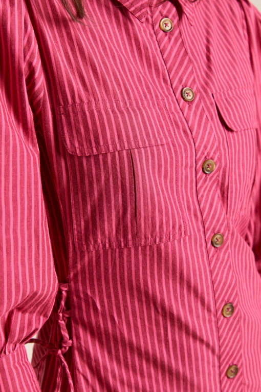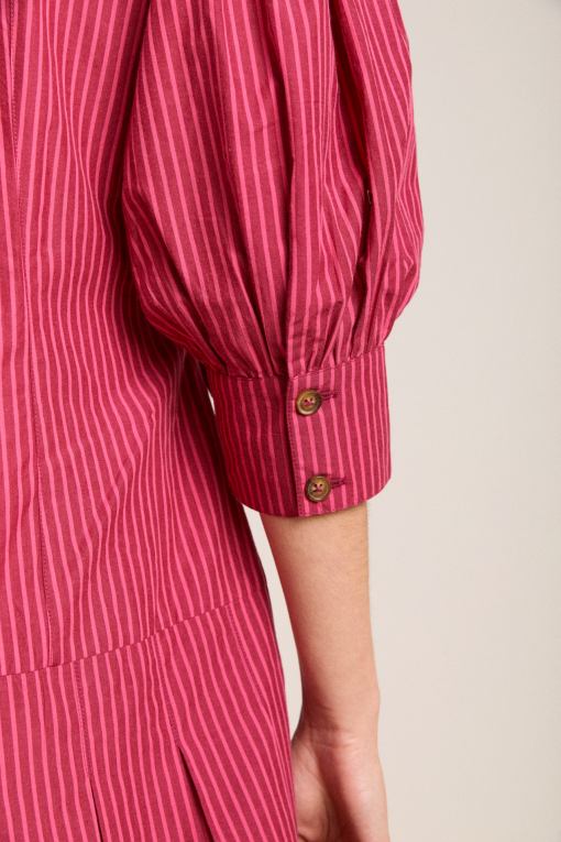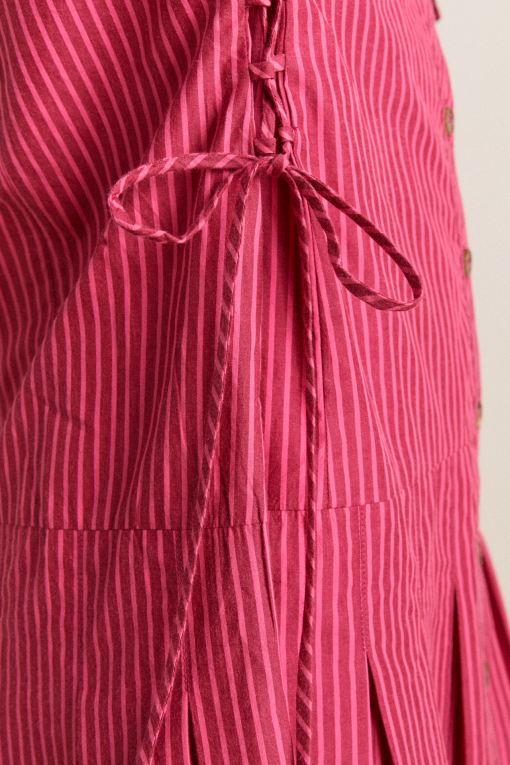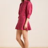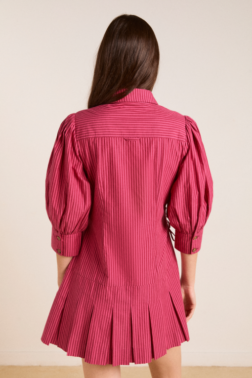 Fusing masculine tailoring with a feminine details, meet the Maisie Mini Shirt Dress in berry business. Crafted from 100% organic cotton, the Maisie features a drop waist and pleated skirt with functional ties at the waist. Matching accessories available.