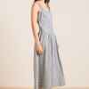 Meet the Mallory Midi Dress in cloudy check. Crafted from 100% organic cotton, it features a hand sewn smocked bodice, low back and a flowy drop waist skirt. The perfect balance of structure and softness, this dress will be on repeat season after season. Matching accessories available.