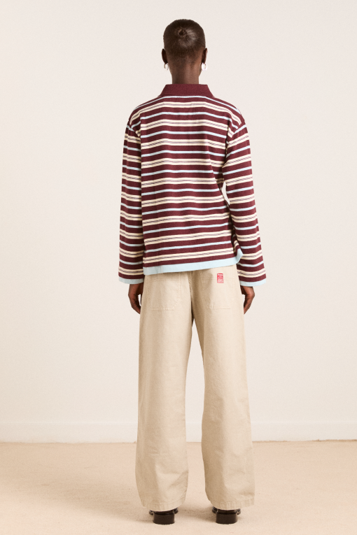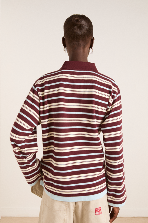 Crafted from 100% organic cotton, this oversized rugby block echoes the timeless appeal of our bestselling Remie, now updated with thoughtful new details. Featuring a button-up placket, contrast blue double-layer detailing at the hem and sleeves, and a button and tab at the side hem-allowing you to wear it relaxed or cinched at the waist for versatile styling.