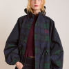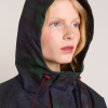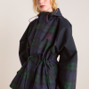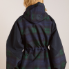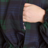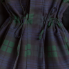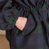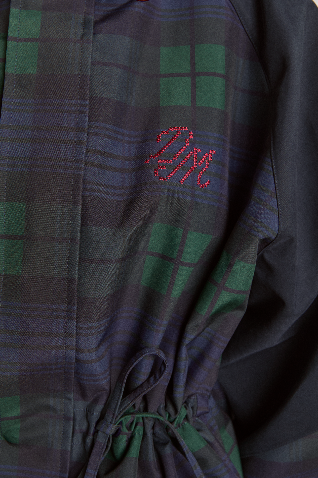 Meet our Liu Shower Resistant Raincoat. Crafted from recycled fabric in a custom navy check, the Liu offers a flattering silhouette with adjustable waist ties and cuffed balloon style sleeves. Elevated by our signature embroidered DM logo on the chest, an adjustable hood and smartly placed pockets. This piece is refined yet functional, designed to tackle any rainy day in style.