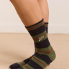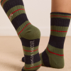 Meet our rib calf length socks in olive multi stripe. Crafted from 75% organic cotton, 23% recycled nylon, and 2% elastane, offering a perfect blend of comfort, durability, and a touch of stretch. The soft, organic cotton ensures a gentle feel against the skin, while the nylon and elastane contribute to enhanced flexibility and shape retention.