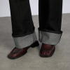 Our best-selling Sylvie Jean is back in an online exclusive classic washed black colourway. Made from Selvedge denim, the Sylvie Jeans feature signature DM embroidery detailing on the back pockets and a turned up hem.