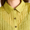 The perfect mix of tailored and floaty, meet the Sheer Wendy Blouse in golden lime. Complete with a sheer finish, button down front, and pin tuck detailing. Pair with our matching Glinda Ruffle Mini Skirt in golden lime for a statement, or with a basic to let the Wendy do all of the talking!