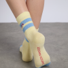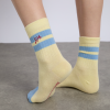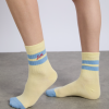 Our calf length socks boast a yellow & blue sporty stripe design.