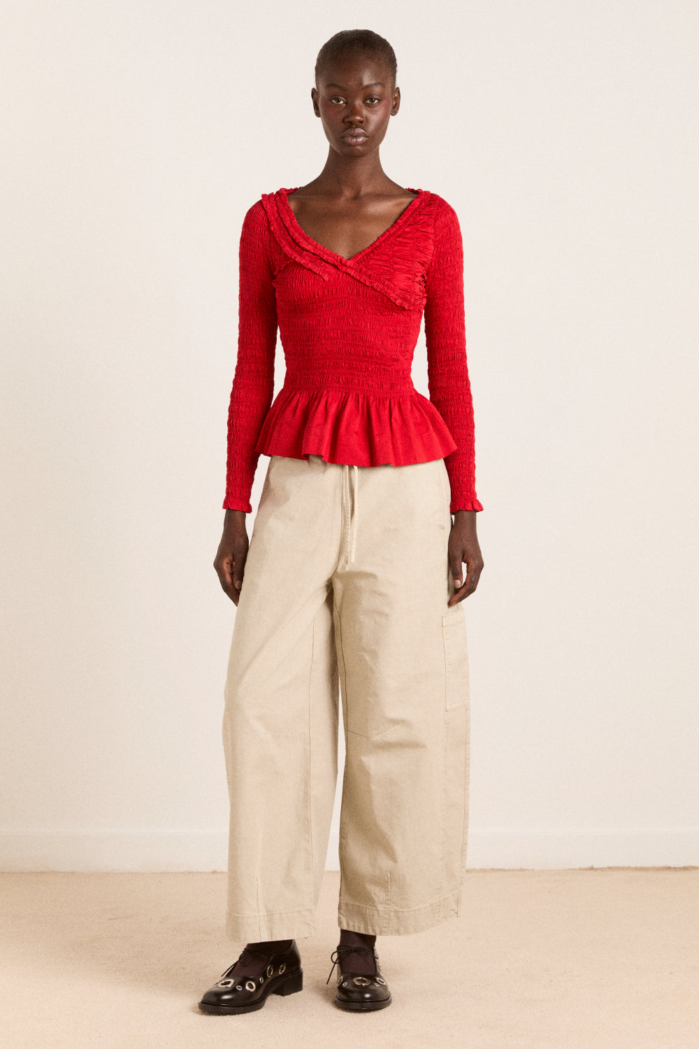 Damson Madder Women’s Suri Shirred Cotton Satin Blouse – Red | Red
