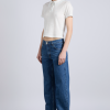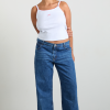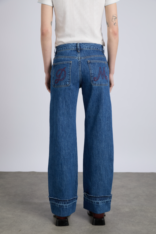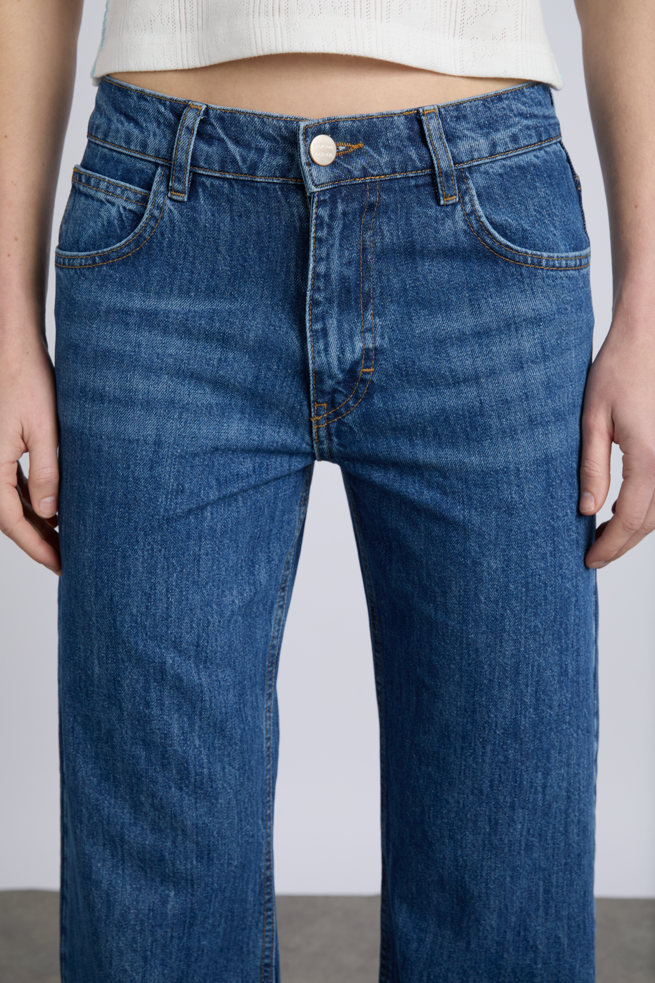 Our best selling Sylvie Jean is back, this time in a new vintage mid blue wash. Design features include a turned up hem and our logo embroidered on the back pocket.