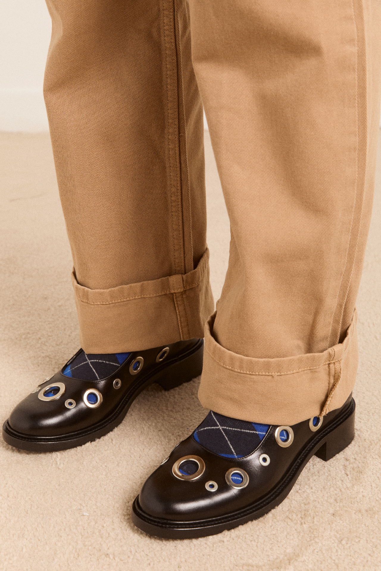 Our hero Sylvie Jeans have been reimagined in a bold colour refresh. Cut with a straight leg, this style features a classic turn-up hem and removable belt, finished with tonal DM logo embroidery on the back pocket. Matching blazer and skirt available.