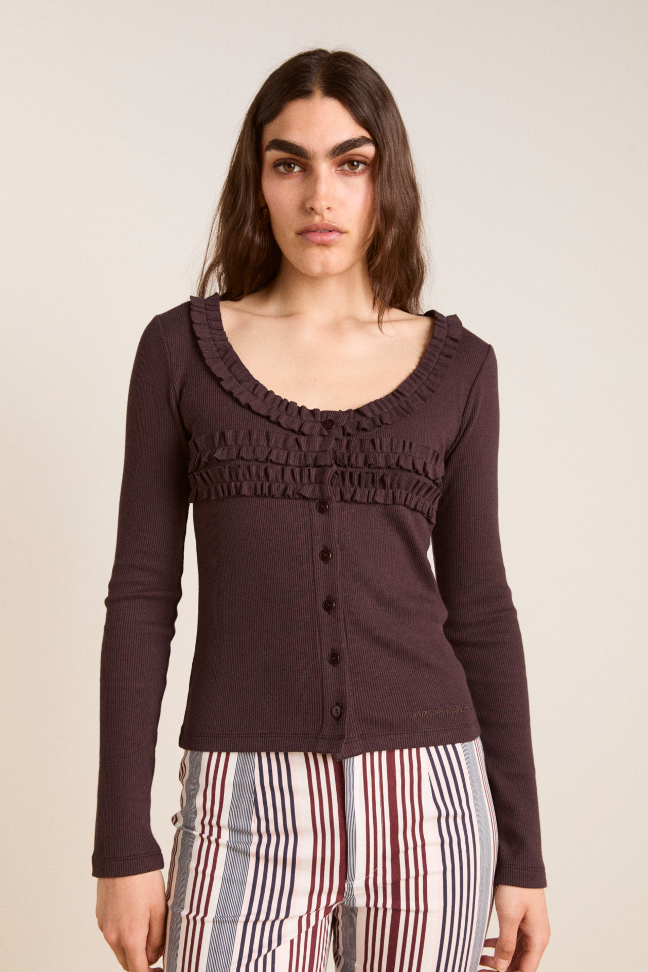 Damson Madder Women’s Varsha Frilly Cardi – Brown | Brown
