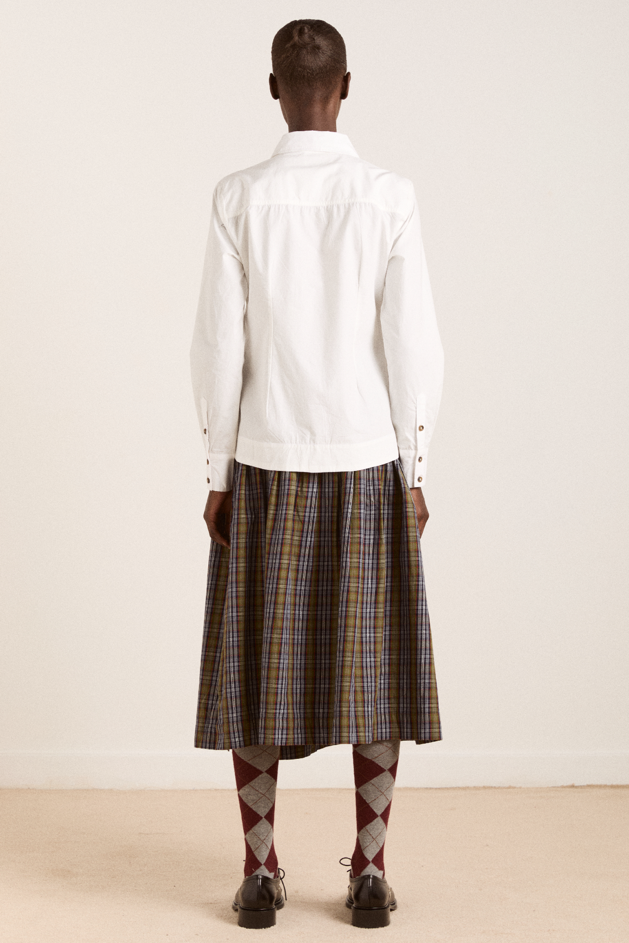 Fusing form and function, the Xenia Shirt is a staple piece. Crafted from 100% organic cotton, the Xenia features gathered panel detailing, with a button down front in a crisp white.